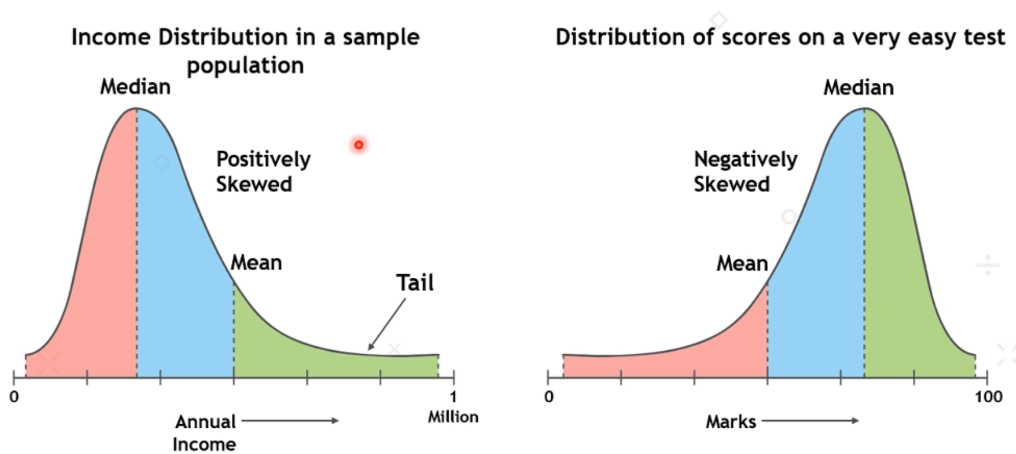 Skewness refers to the degree of asymmetry in a distribution. And, asymmetry reflects extreme scores in a distribution. Moreover, it includes positive and negative skewness.