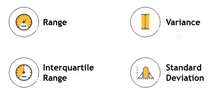 - Four main measures of dispersion for a dataset are range, variance, interquartile range, and standard deviation.
