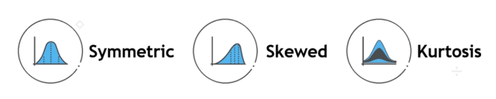 - Leptokurtic: More values in the distribution tails and more values close to the mean (i.e. sharply peaked with heavy tails)