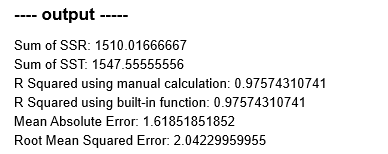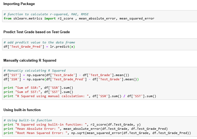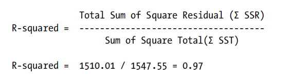 The R-squared metric is the most popular practice of evaluating how well your model fits the data. R-squared value designates the total proportion of variance in the dependent variable explained by the independent variable. It is a value between 0 and 1; the value toward 1 indicates a better model fit. See the table below.