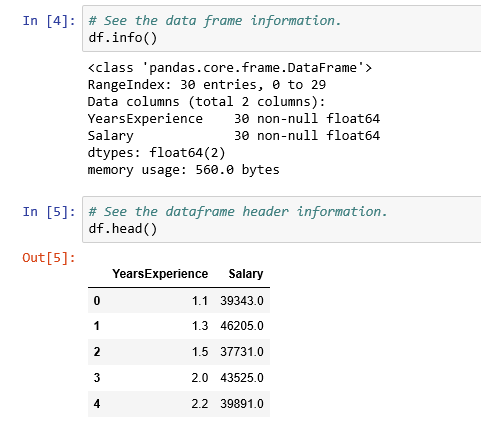 Here we are using a salary dataset having two columns YearsExperience and Salary for our programming practice.