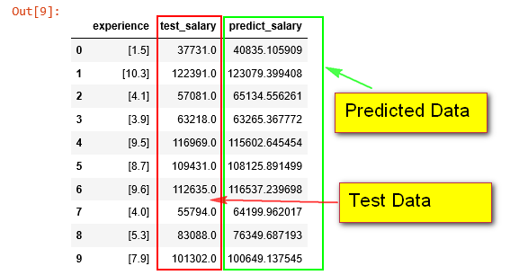 df_sample = pd.DataFrame({'experience': X_test.tolist(), 'test_salary': y_test, 'predict_salary': y_pred})