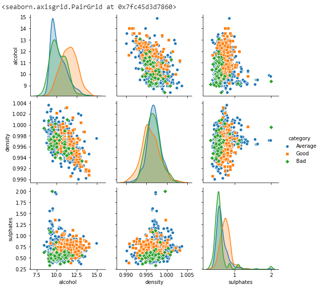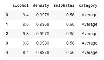 headerNames = ['alcohol', 'density', 'sulphates', 'category']