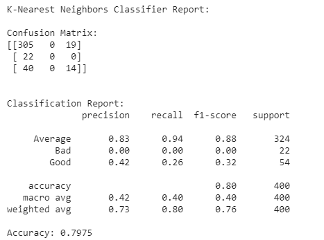 print_classification_report("K-Nearest Neighbors Classifier Report:", y_test, y_pred)