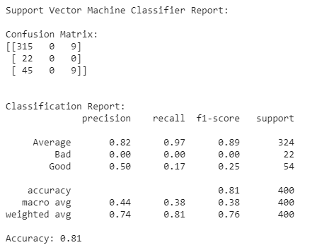 Output: [‘Average’ ‘Bad’ ‘Good’]